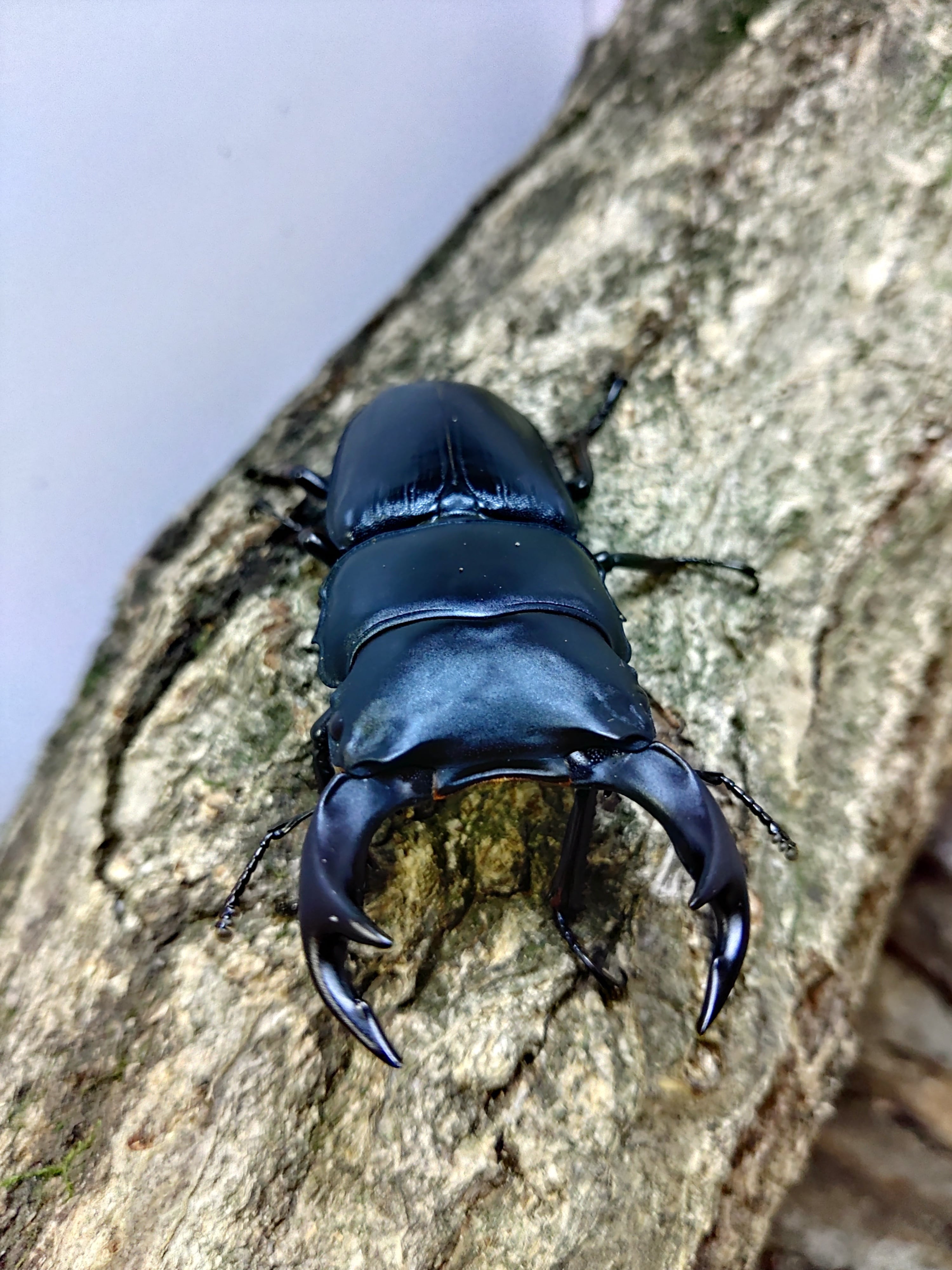 オスは、アゴに大きな内歯があり、大型になるほど上を向く、小型個体では真横(やや下向き)に出ます。