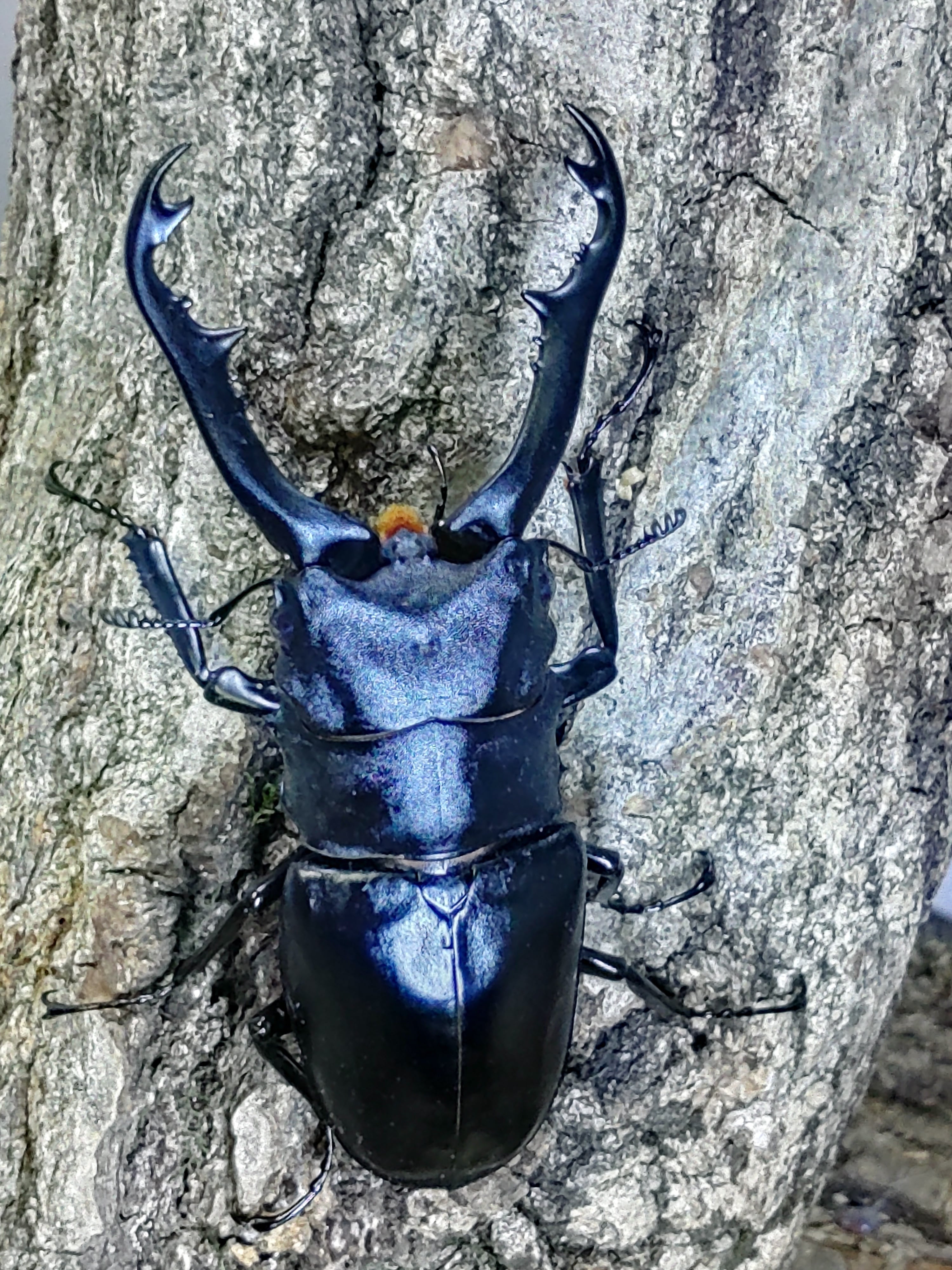 ギラファノコギリクワガタは、世界で最も大きなクワガタムシとして知られています! その独特な体形と威風堂々とした姿は、昆虫愛好家からの人気を集めています。体色は深い黒で、亜種により異なる光沢が見られ、時には上翅がやや褐色を帯びた個体も存在します。